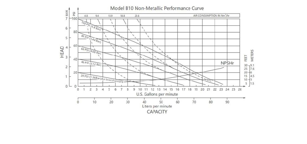 1" (25mm) B10 Non-metallic Pump Performance