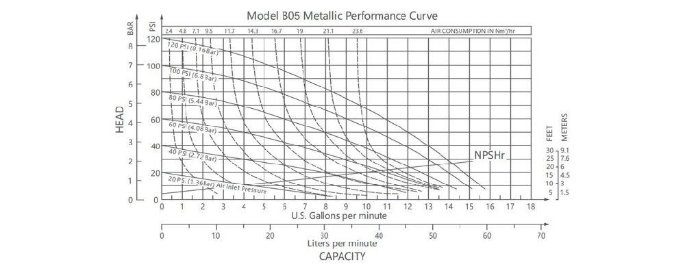 1/2" (12mm) B05 Metallic Pump Performance