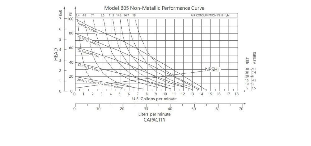 1/2" (12mm) B05 Non-metallic Pump Performance